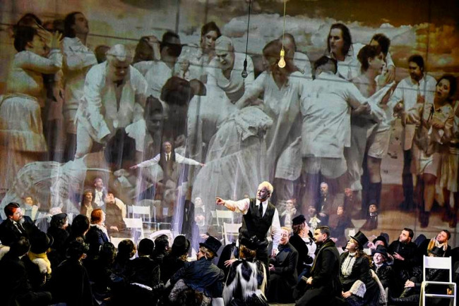 Oper von Arnold Schönberg Vocalconsort Berlin (Gastchor); Theater Bonn; Leitung Dirk Kaftan; Szenische Leitung Lorenzo Fioroni 10.12.2023 (Premiere); 13.12.2023; 17.12.2023; 29.12.2023; 07.01.2024; 13.01.2024